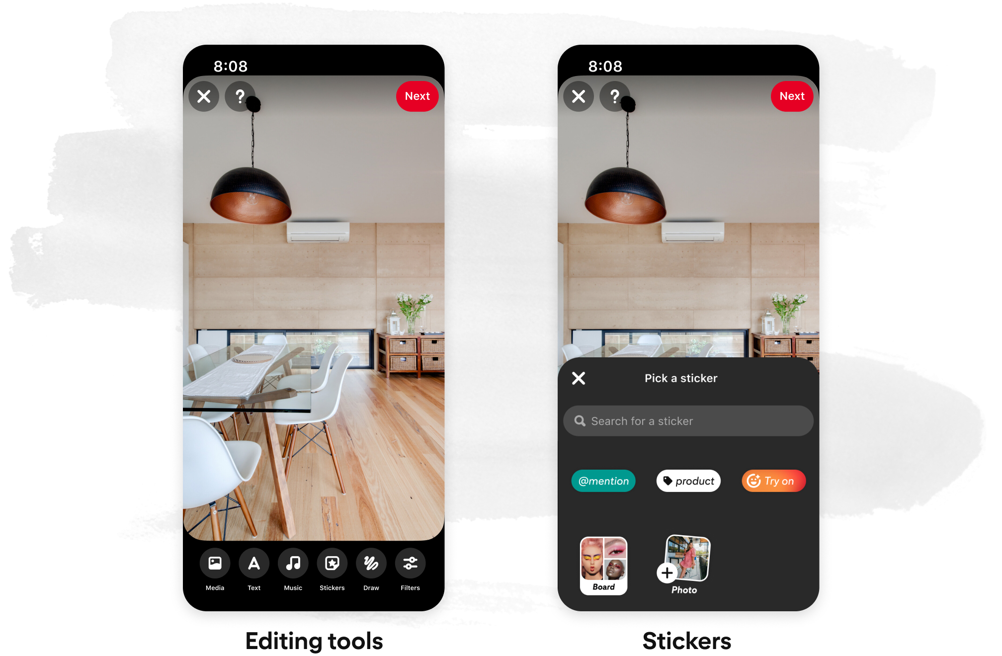 And there’s even more ways to get creative—and create engagement. Editing tools, which allow you to add personality with music and stickers, were once limited to Idea Pins. With the new Pin format, you’ll have access to the editing tools whether you’re creating a Pin with images or videos or both.