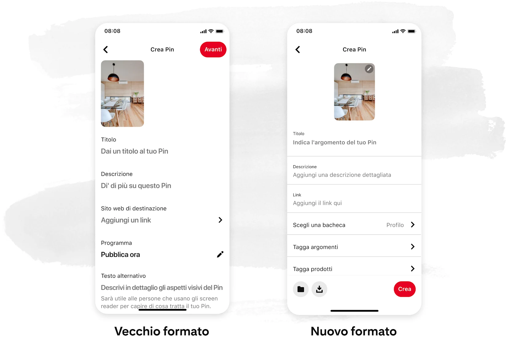 Stiamo ottimizzando il processo di creazione dei contenuti per renderlo ancora più semplice e gratificante. Come? Intendiamo riunire le migliori caratteristiche dei Pin standard e dei Pin Idea in un unico formato completo.