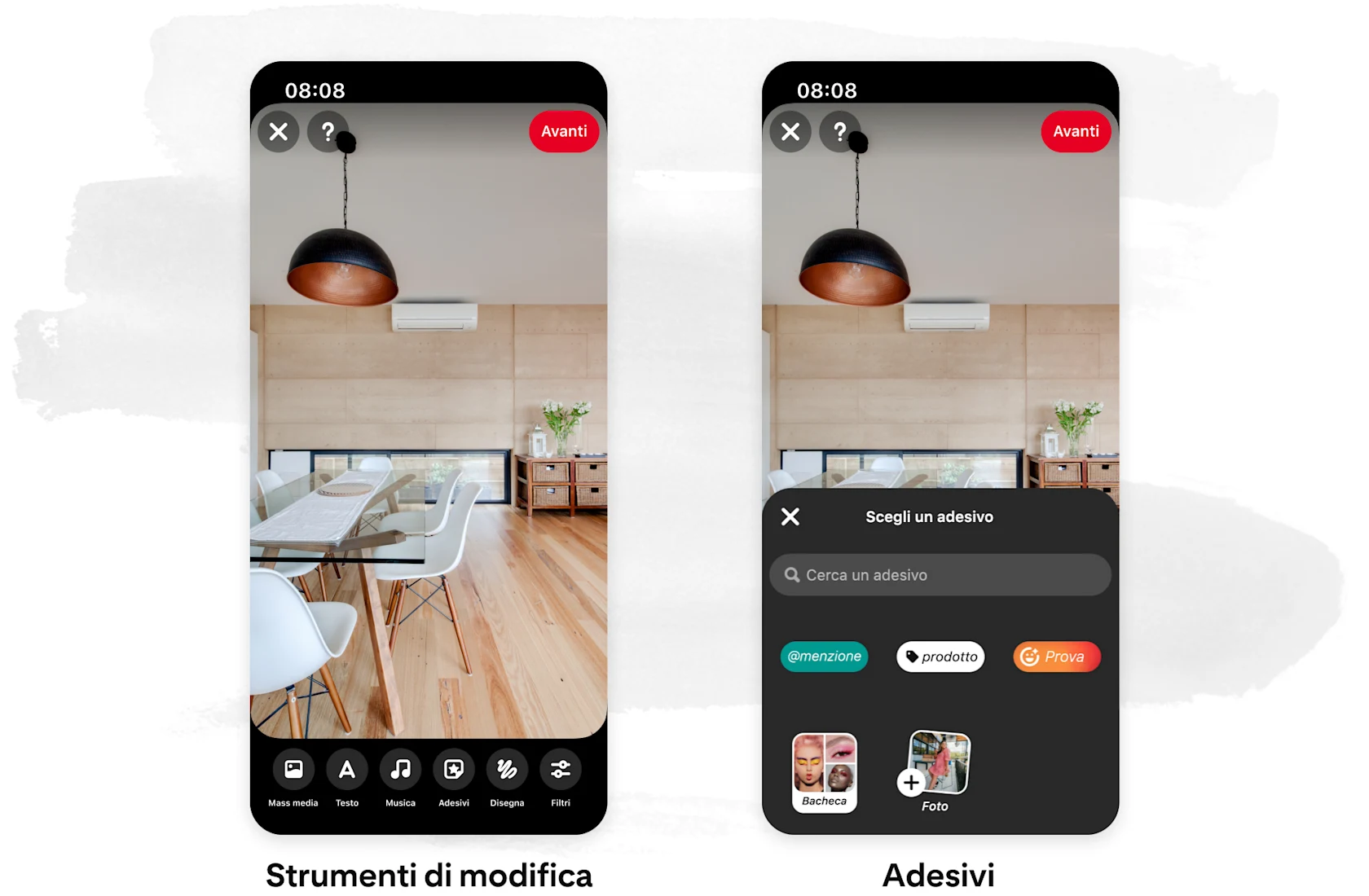 Inoltre, adesso avrai a disposizione anche più modi per creare contenuti, e quindi più interazioni. Gli strumenti di modifica, che permettono di aggiungere un tocco personale con musica e adesivi, un tempo erano limitati ai Pin Idea. Con il nuovo formato, invece, puoi utilizzarli a prescindere dal tipo di Pin: immagine, video o entrambi.