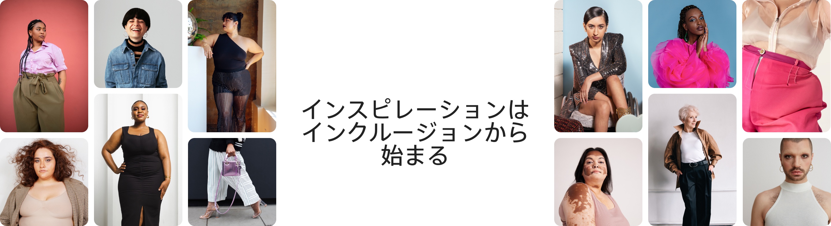 体型テクノロジー:Pinterest に集まった 50 億件を超える画像から、さまざまな体型を識別するテクノロジーです。Pinterest のインクルーシブな AI ツールに新たに導入されたこのテクノロジーを用いて、レディースファッションとウェディング関連コンテンツの検索結果と関連するフィードで、多様な体型の表現を高められるようアルゴリズムを調整しています。たとえば、「デートファッション」を検索すると、ファッション関連の検索結果で幅広い体型の人々の画像が表示されます(日本には今後導入予定)。