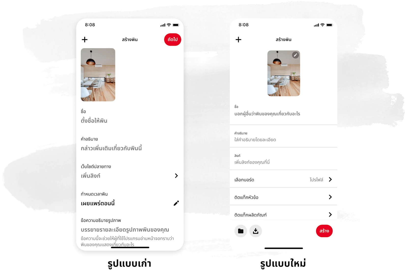 เรามองหาวิธีที่จะทำให้ประสบการณ์การสร้างสรรค์ของคุณดีขึ้นอยู่เสมอ และด้วยวิธีสร้างสรรค์ที่ง่ายและรวดเร็วยิ่งขึ้น มาดูกันว่าฟีเจอร์ยอดนิยมบางส่วนของพินแบบเดิมเปรียบเทียบกับพินที่ได้รับการอัปเดตแล้วเป็นอย่างไร