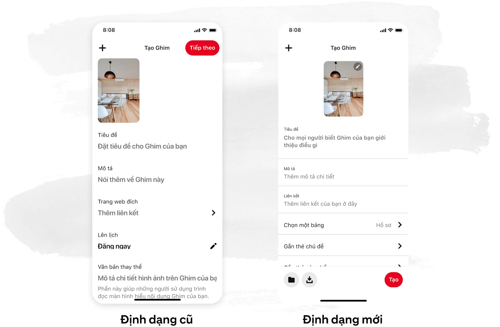 Chúng tôi luôn nỗ lực mang lại trải nghiệm sáng tạo tốt hơn cho bạn. Giờ đây, việc tạo Ghim trở nên dễ dàng và nhanh chóng hơn bao giờ hết. Hãy cùng xem các tính năng quen thuộc trước đây được nâng cấp như thế nào trong định dạng Ghim mới nhé.